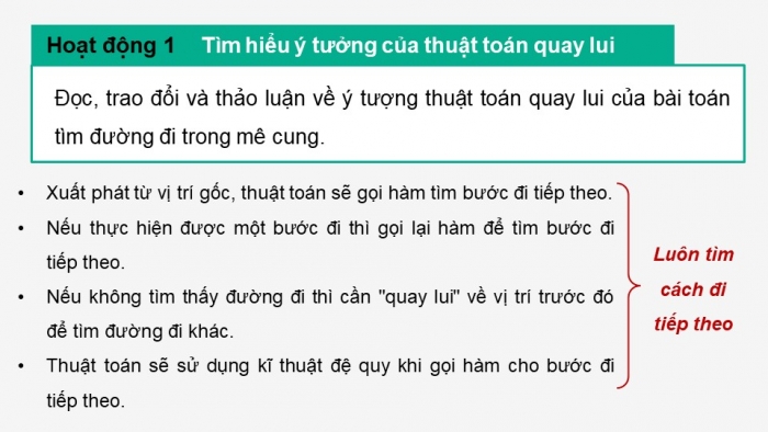 Quan sát, thực hiện và thảo luận các bước thiết kế mô hình tổng quát của kĩ thuật duyệt quay lui.