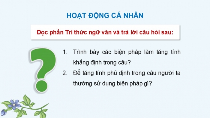 NHẬN BIẾT MỘT SỐ BIỆN PHÁP LÀM TĂNG TÍNH KHẲNG ĐỊNH, PHỦ ĐỊNH TRONG VĂN BẢN NGHỊ LUẬN