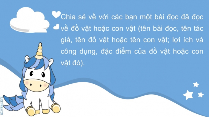 3. CHIA SẺ MỘT BÀI ĐỌC ĐÃ ĐỌC VỀ ĐỒ VẬT HOẶC CON VẬT