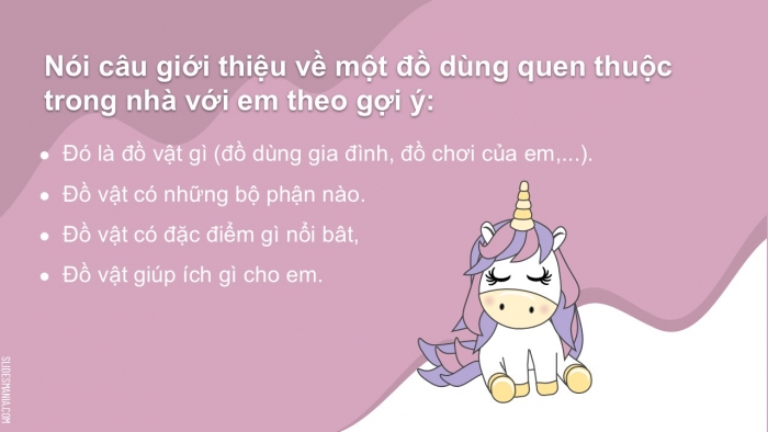 Nói câu giới thiệu về một đồ dùng quen thuộc trong nhà với em theo gợi ý: