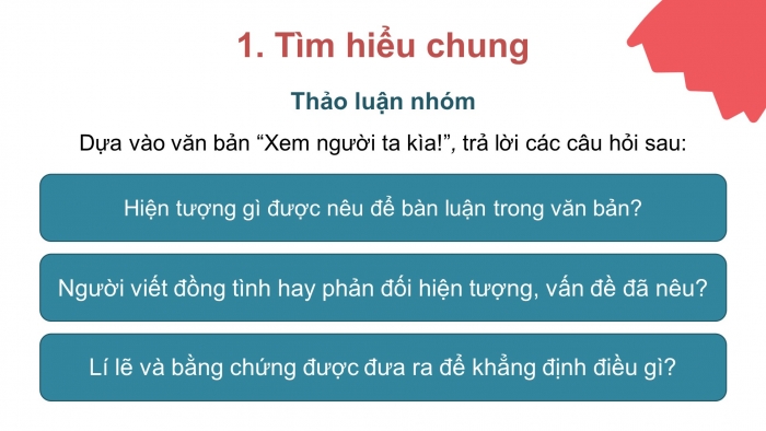 Dựa vào văn bản đã học Xem người ta kìa!, hãy trả lời các câu hỏi sau: