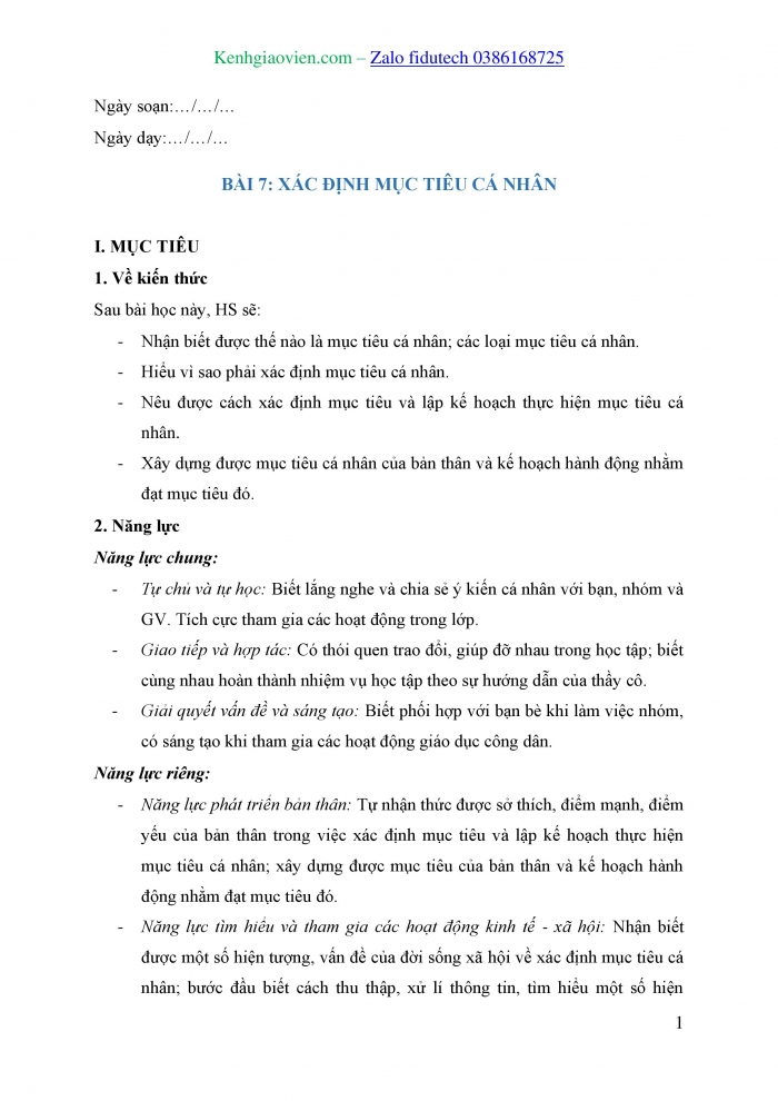 BÀI 7: XÁC ĐỊNH MỤC TIÊU CÁ NHÂN