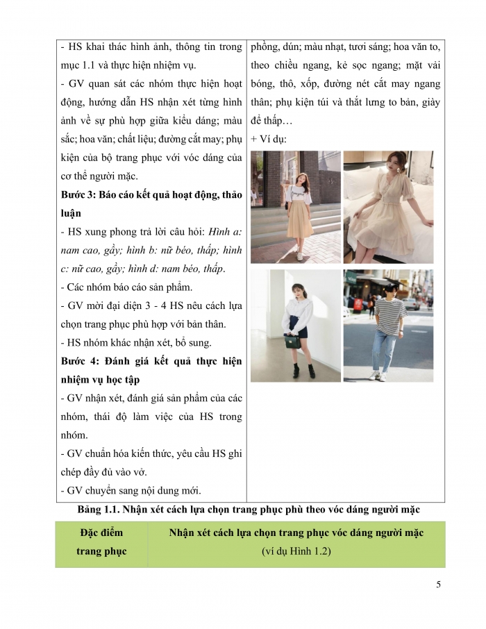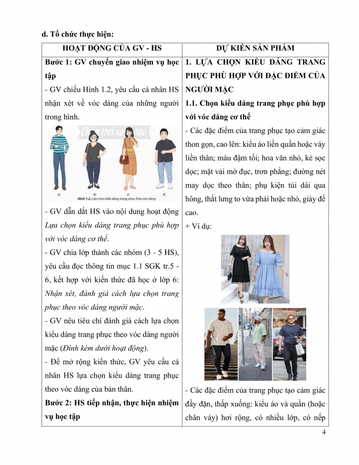 Hoạt động 1. Lựa chọn kiểu dáng phù hợp với vóc dáng cơ thể