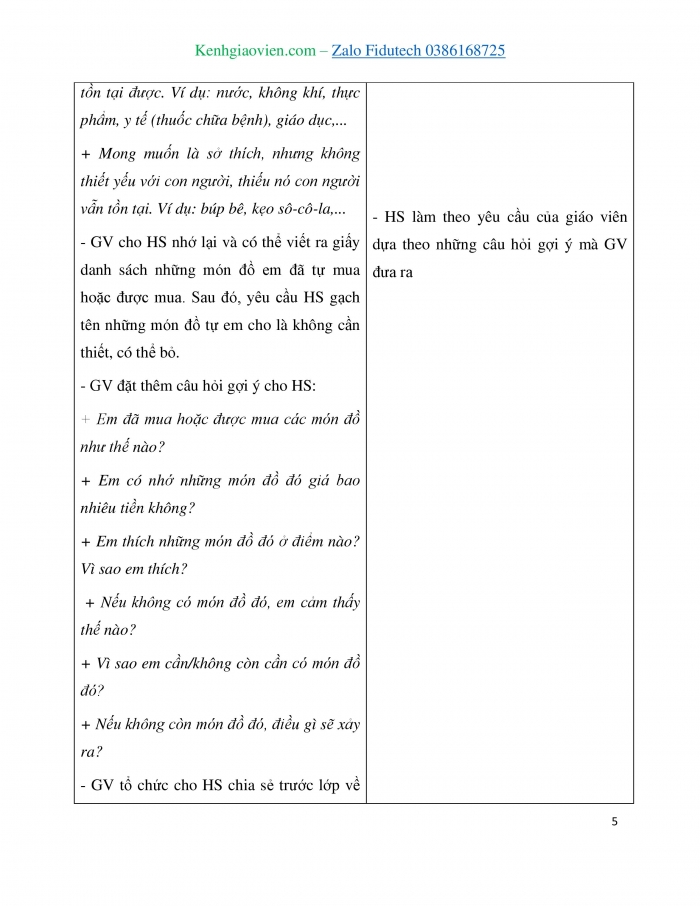 Hoạt động 2: Tìm hiểu nhu cầu và mong muốn trong chi tiêu