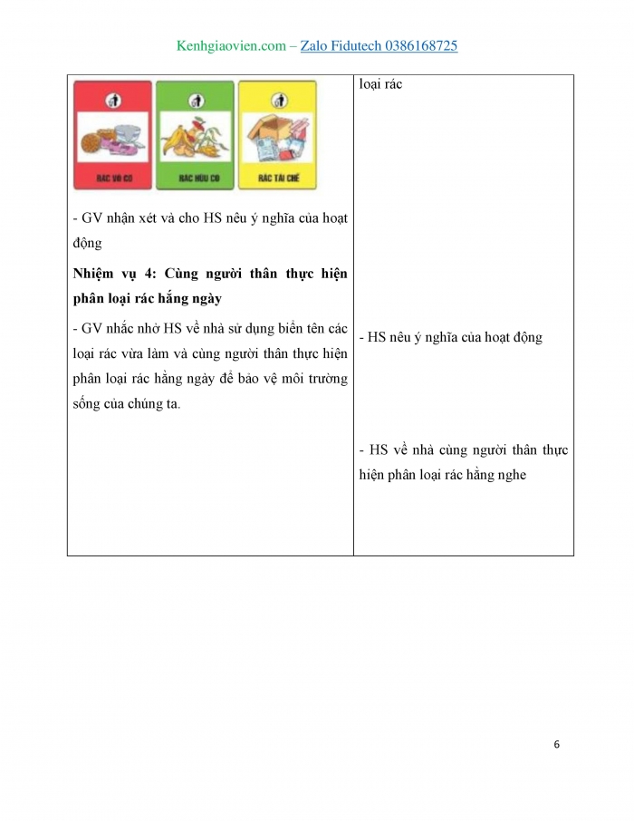 Hoạt động giáo dục: Thực hiện hoạt động phòng chống ô nhiễm môi trường. Thực hiện phân loại rác thải sinh hoạt